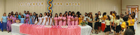 Como castigo... brincadeira.rsrsrsrs Com o maior prazer, vou compartilhar com vocês algumas fotinhas da atividade da Estaca Penha. Vou começar compartilhando a da Ala Vila Esperança que ficou com o valor Conhecimento, que é a ala da Polly. Deem uma bela olhada na toalha que linda!!! E nos arranjos da mesa: